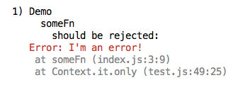 Side note: normally we should expect an UnhandledPromiseRejection to show up in the console as well, but Mocha has some in-built error handling / promise rejection handling that is catching this instead.