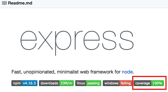 Another possible way of quickly assessing unit tests is looking for a code coverage badge in the README.md. Popular projects often have this, like Express, below: